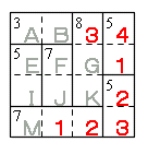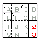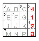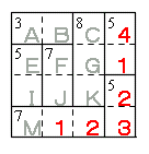 もちろん左から3番目の列も,和は10 なのだが,C+G+K=8 となっているから,