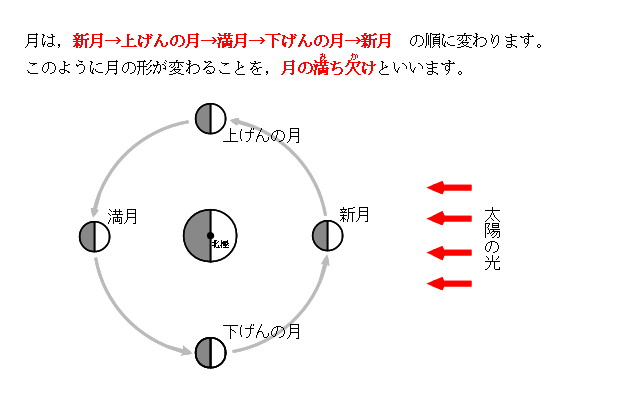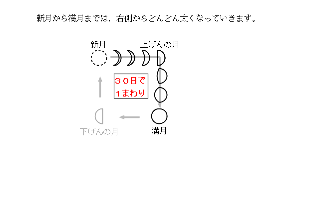 月の動き −4年生学習用− の,「月の満ち欠け」についての解説です。