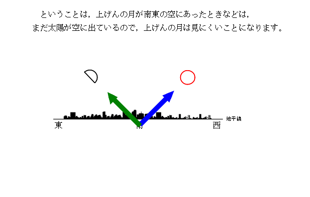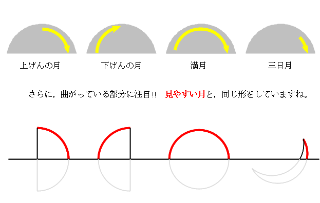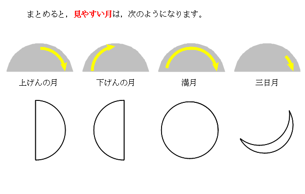 月の動き −4年生学習用− の,「見やすい月と見にくい月」についての解説です。